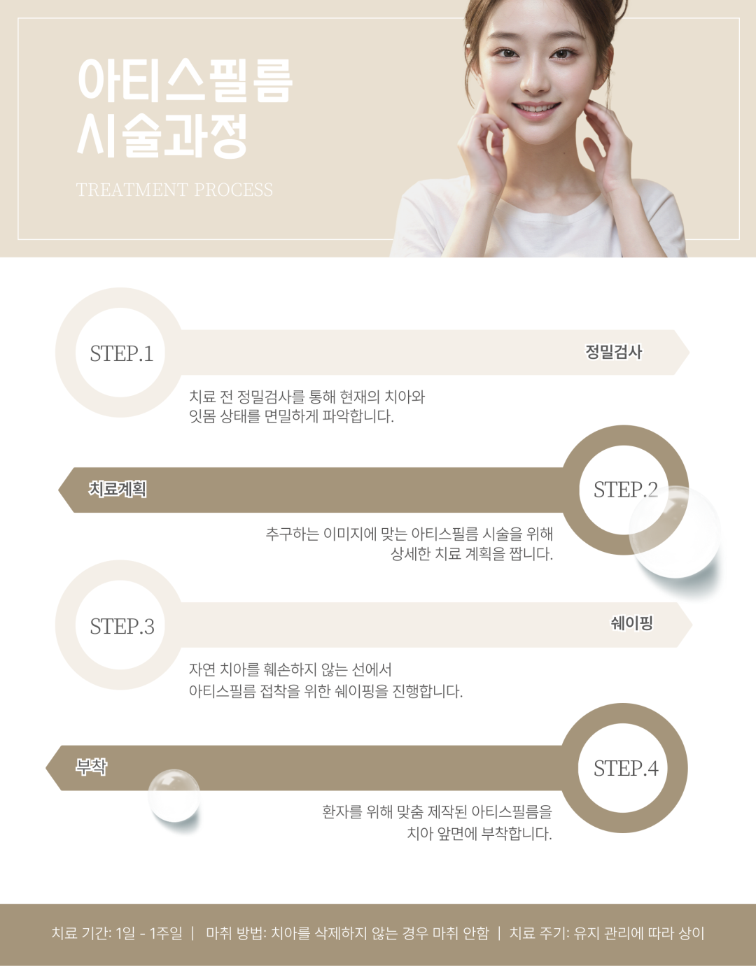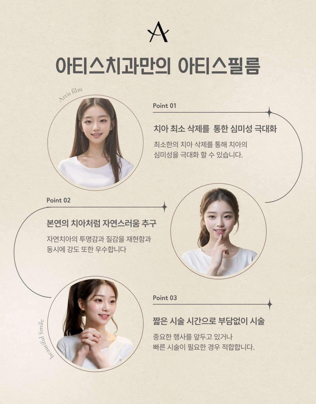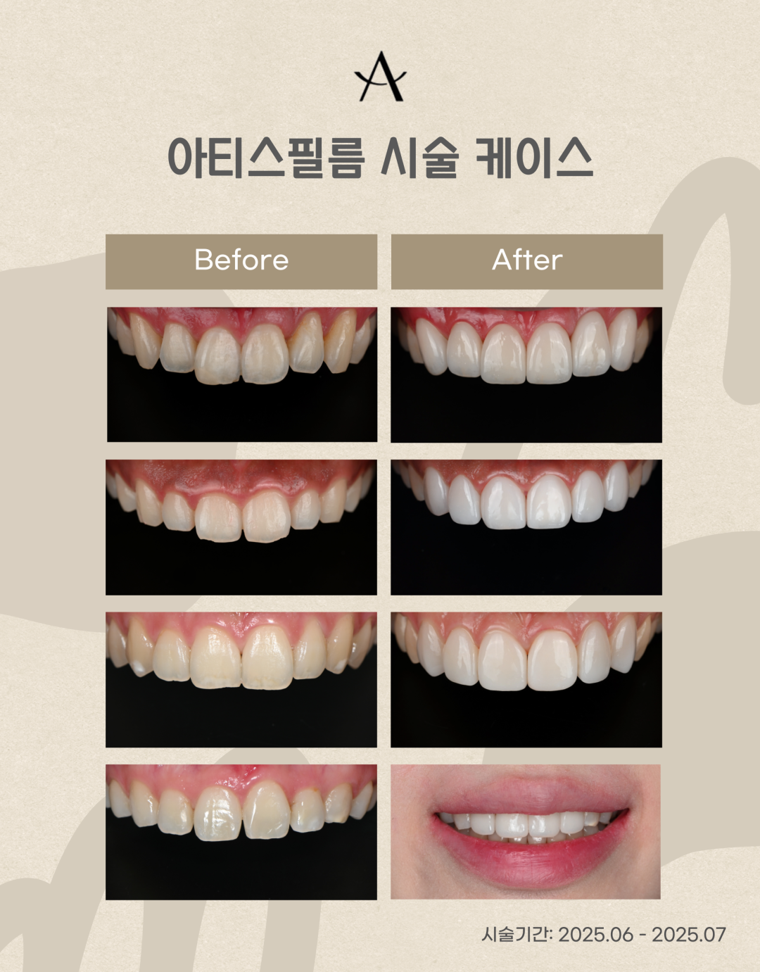 • 시술 전 고민 웃을 때마다 앞니가 너무 신경 쓰였어요 사진 찍을 때도 항상 살짝 입 다물고 웃거나 각도를 잡느라 몇 번씩 다시 찍고 치열이 막 심하게 틀어진 건 아닌데 미묘하게 비대칭이라 거울 볼 때마다 ‘이거 진짜 나만 보이나? 싶어서 매일 고민이였다가 이번에 인생네컷 찍고 보니 너무 잘보여서 더 큰 고민으로 바뀌었어요 ㅠㅠ • 상담 경험 솔직히 처음엔 치과 고르는 게 제일 어려웠는데 어디는 리뷰는 좋은데 너무 상업적이고, 어디는 친절하긴 한데 결과 사진이 별로고 그래서 일단 후기 + 실제 전후 사진을 제일 많이 봤는데 그중에서도 아티스는 자연스러움이 진짜 눈에 띄어서 ‘딱 티 나는 미소’가 아니라 원래 내 치아 같은 미소 그게 제가 원하는 느낌이라 선택했습니당 • 시술 결과 솔직히 말하면 예뻐지는건 둘째치고 자신감을 더 찾아준거같아 당당해진거같네요 ㅋㅋㅎ 자연스럽고 무엇보다 티 안 나는 자연스러움이 제일 좋았습니다 누가 봐도 뭐했구나 ! 가아니라 요즘 왜 이렇게 인상이 환해졌어? 이게 진까 기분 너무 좋아여 처음엔 시술 직후 살짝 어색했는데 10분만 지나니까 계속 거울보고 웃게되고 이젠 그냥 제 치아같네요 ㅎㅎ너무 만족! • 추가 의견 지금은 정말 만족합니다. 빛 받을 때 치아 라인이 자연스럽게 반짝이고, 웃을 때마다 기분이 좋아요. 주변에서도 “요즘 왜 이렇게 인상이 환해졌어?” 이런 말을 자주 해주셔서 뿌듯해요