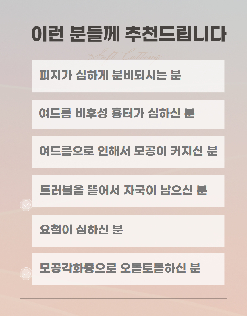 여드름흉터, 모공각화증, 심한 피지에 해초미세침
