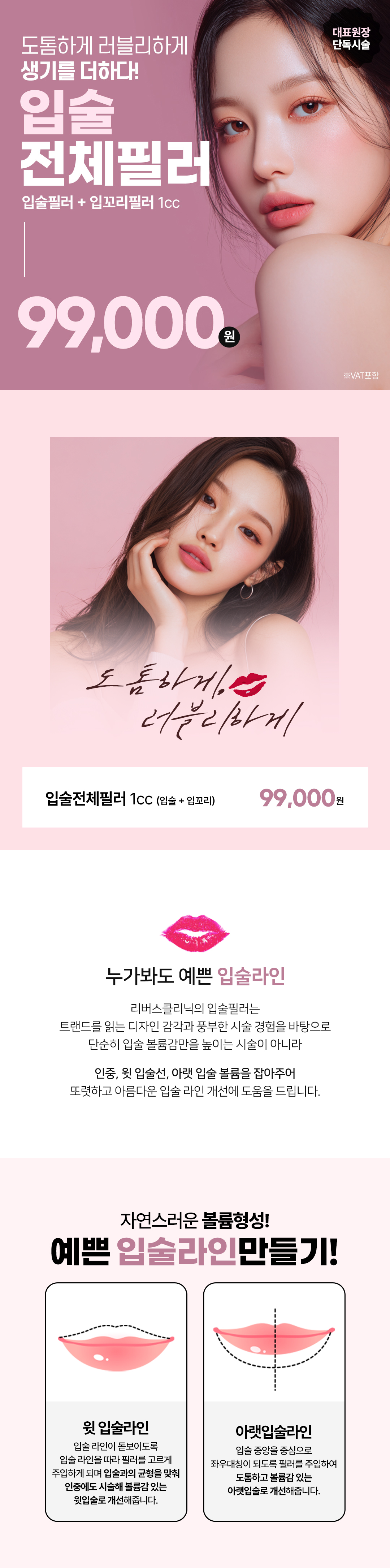 볼륨 가득 입술필러, 입술전체, 입술 입꼬리 리버스클리닉 분당