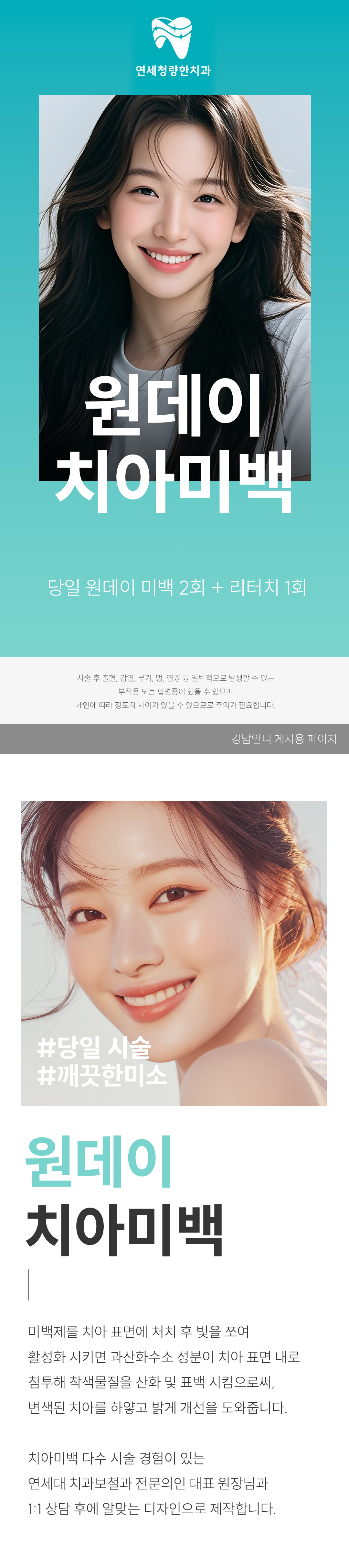 시술 후 일시적으로 치아가 민감하거나 시린 증상 발생할 수 있습니다. 부작용은 개인에 따라 차이가 있을 수 있으므로 의료진과 충분한 상담 후에 진행하시길 바랍니다.