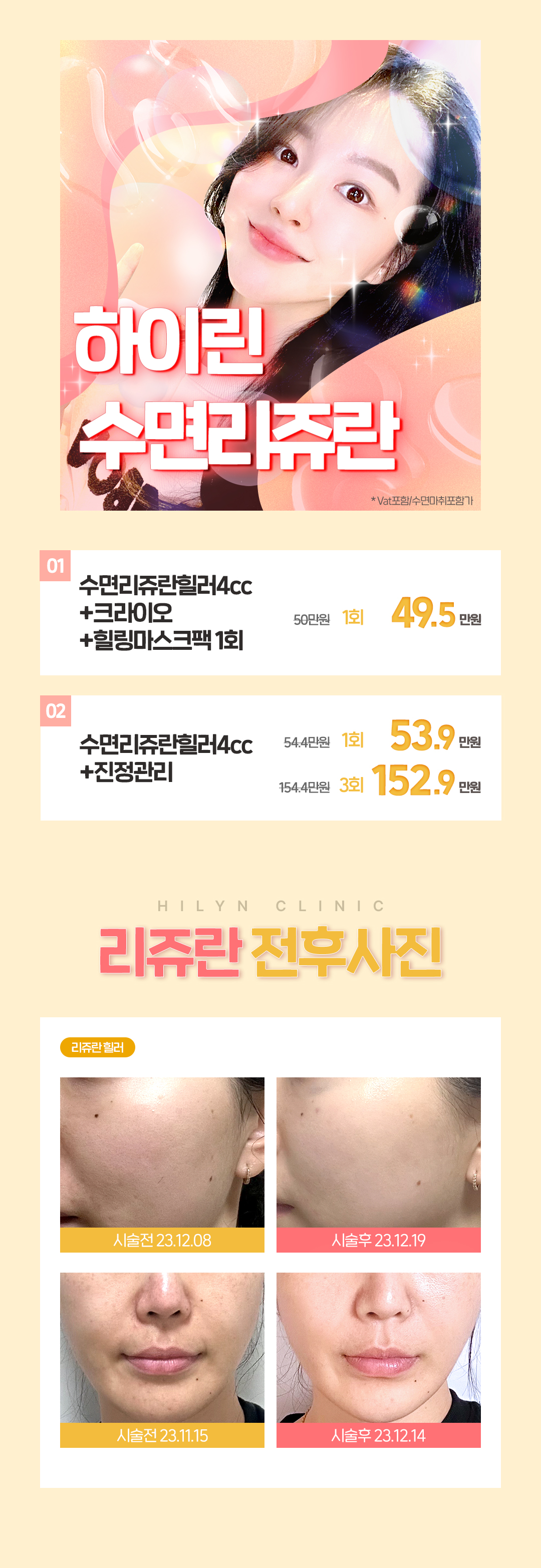 수면 리쥬란힐러 4cc+크라이오+힐링마스크팩 1회