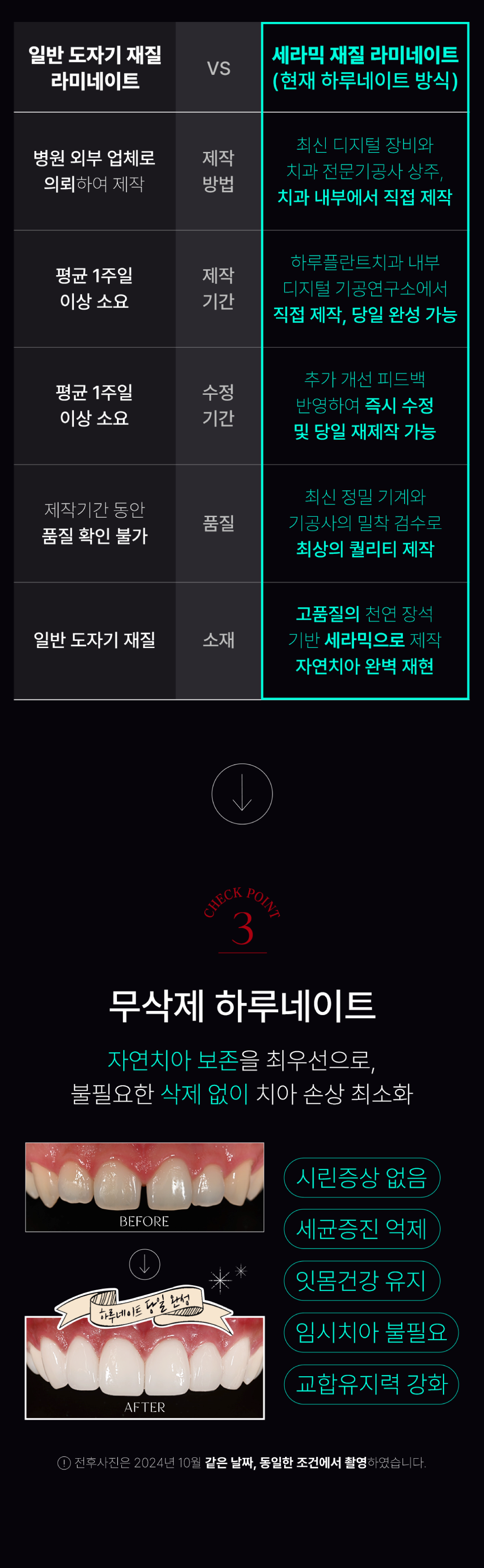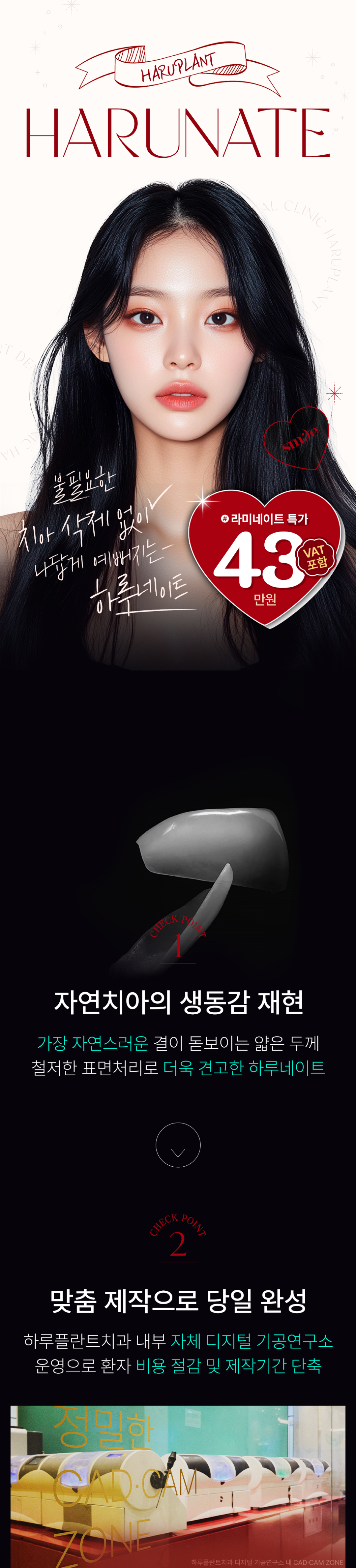 하루네이트는 자연치아보다 강하지만, 시술 후 치아에 강한 자극은 주의해 주세요.